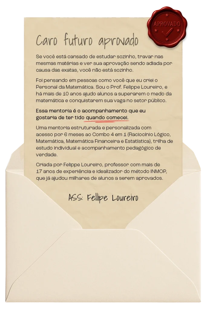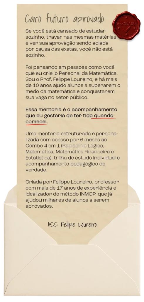 Sou o Prof. Felippe Loureiro, e há mais de 17 anos ajudo alunos a superarem o medo da matemática e conquistarem sua vaga no setor público.
